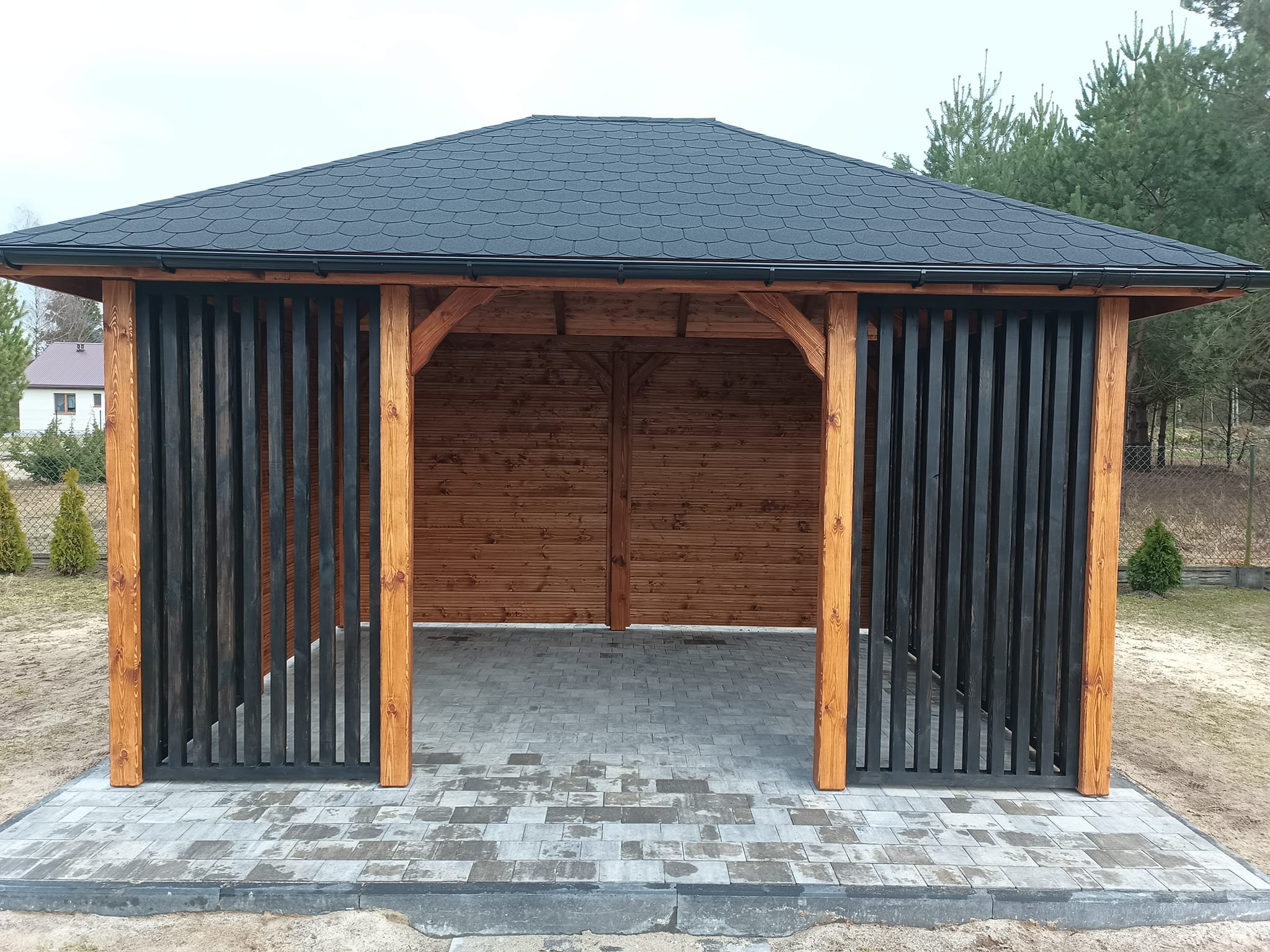 Drewno estońskie > Realizacje > Altana w kolorze brązu i czerni